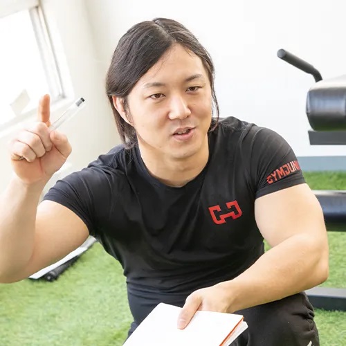 ヒゲと笑顔が特徴的なこう見えて実は優しいトレーナー。沖縄県出身とよく間違えられるが千葉県出身です。キックボクシングや競技力向上、プライオメトリクストレーニングが得意です。