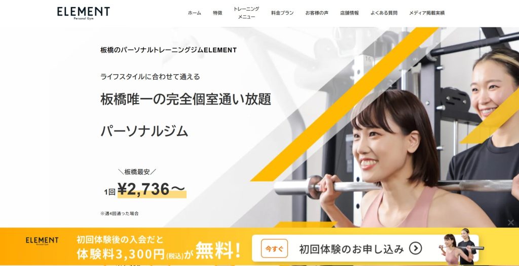 - パーソナルトレーニングジム ELEMENT(エレメント)板橋店※体験当日入会で無料!