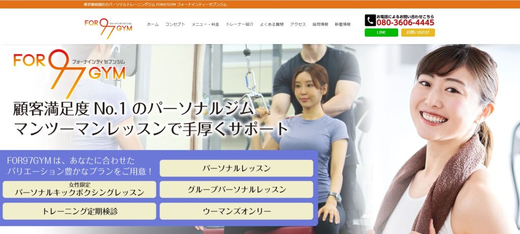 「FOR97GYM」は続けられるトレーニングジムをコンセプトに、健康的な体作りをサポートします。トレーニングは継続することで価値が高まるという考えのもと、会員一人ひとりに合ったシステムとプログラムを提供。トレーナーは担当制で、ボディメイクコンテストで優勝経験のある女性トレーナーも在籍。女性トレーナー希望の方も大歓迎です。無理なく快適に、長期的な健康と美しさを追求するお手伝いをします。あなたの理想の体作りをサポートします。