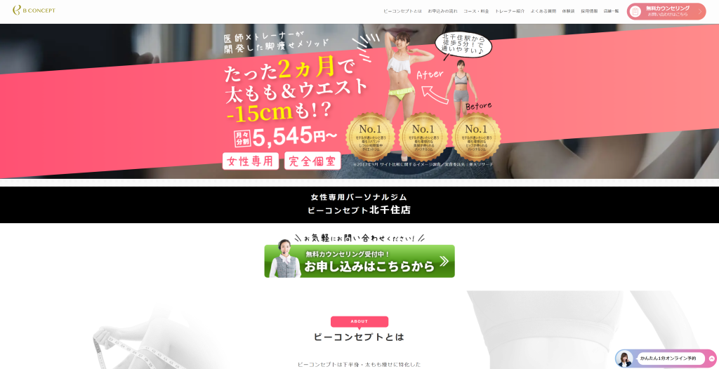 「OUT LINE 北千住1号店」は、女性専用のパーソナルジムです。全国1000店舗から選ばれたベストジムアワード2020受賞した実績があります。