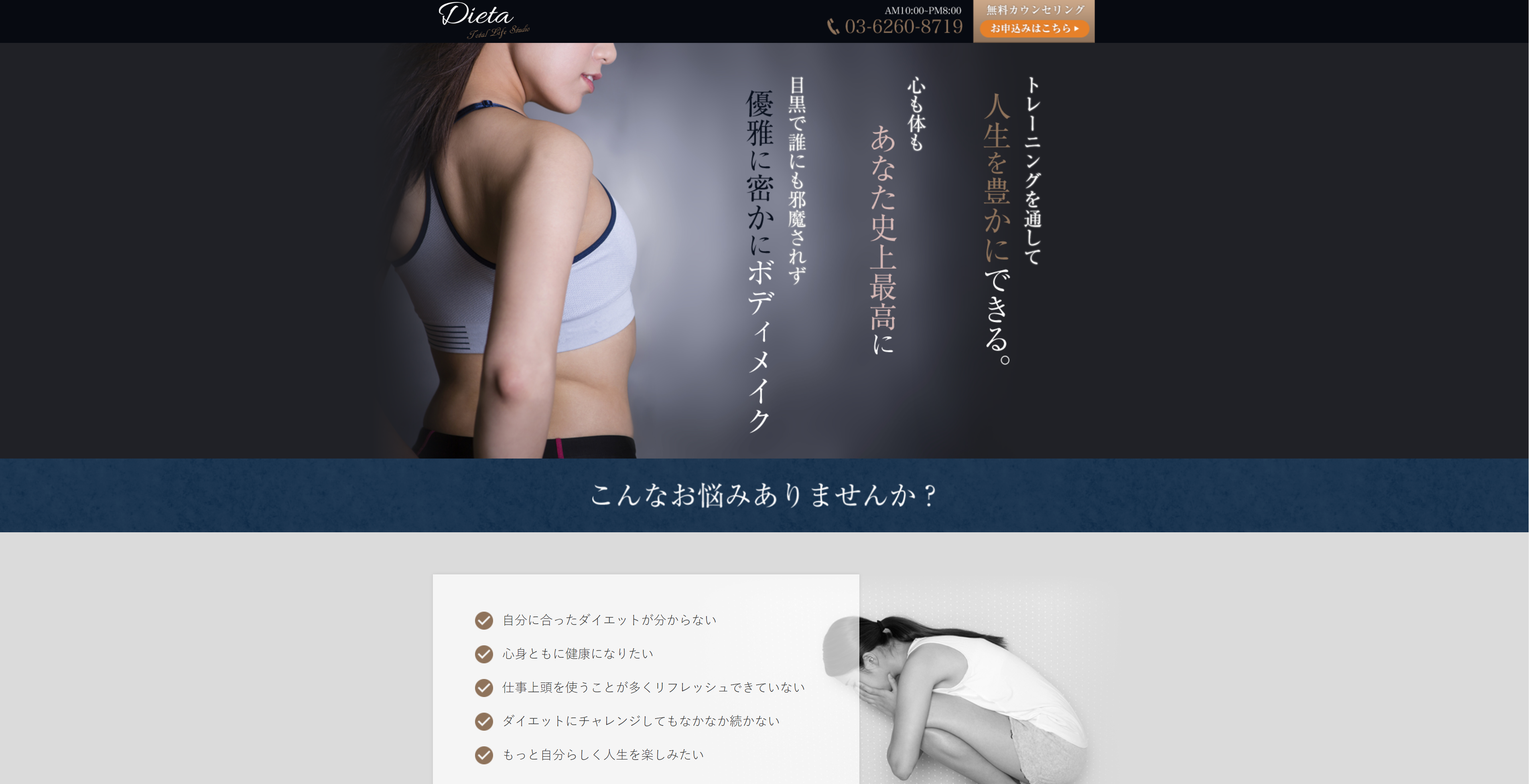 | コース料金 | ■オンナを上げる60分! 2カ月集中ダイエットコース 60分×週2回×8週間(合計16回) ¥112,000(税込)1回あたり\7,000 ■オンナを上げる90分! 2カ月集中ダイエットコース 90分×週2回×8週間(合計16回) ¥144,000(税込)1回あたり\9, ■骨盤調整・猫背改善コース ¥7,000(税込)/60分 ¥9,000 (税込)/90分 ■オンライン指導 60分(単発) ¥7,000(税込) |