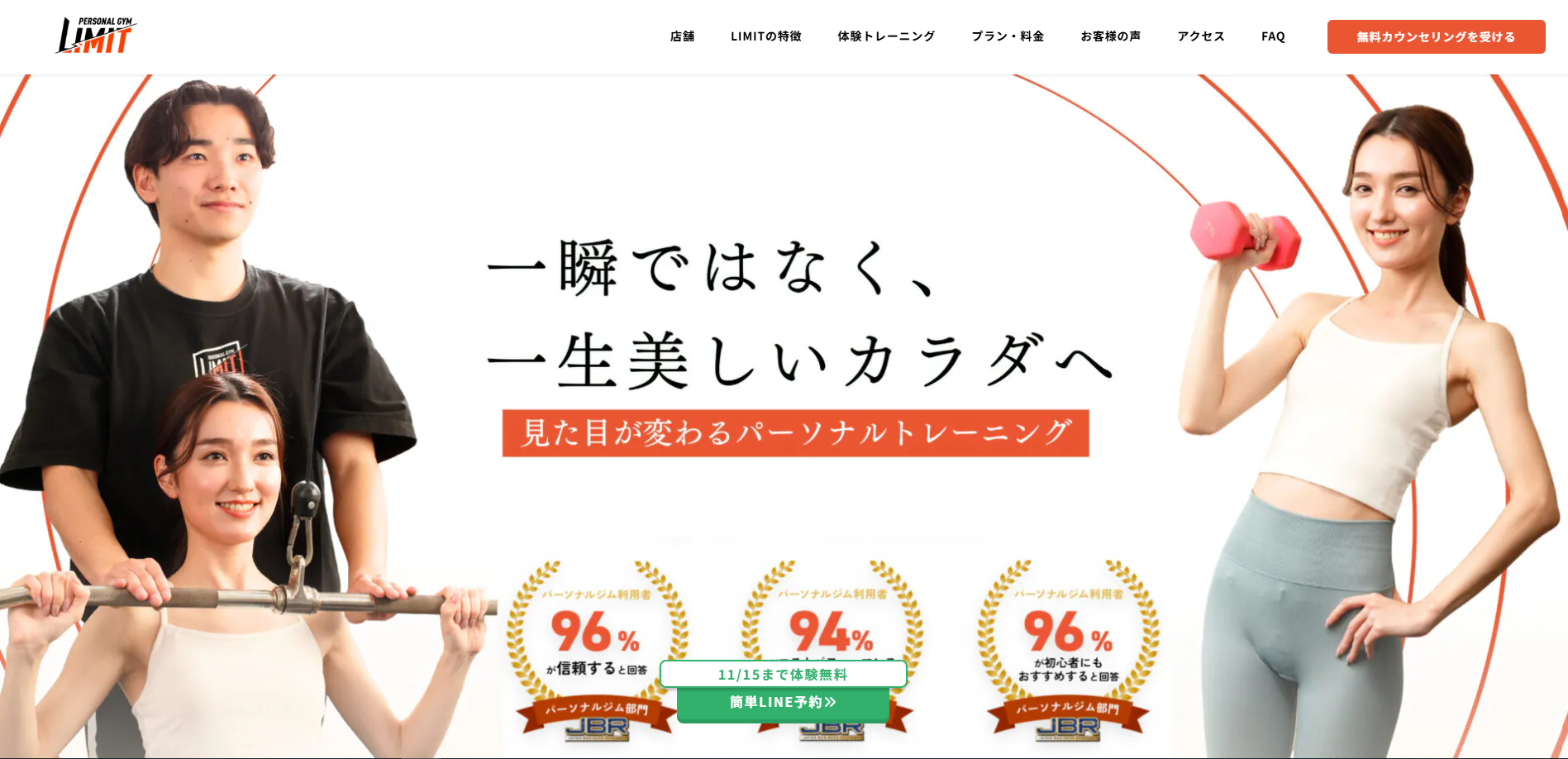 「パーソナルジムLIMIT 目黒店」は、あなた専属の パーソナルトレーナーが、目標達成まで責任を持ってサポート致します。運動が初めての方でも安心してお任せください。