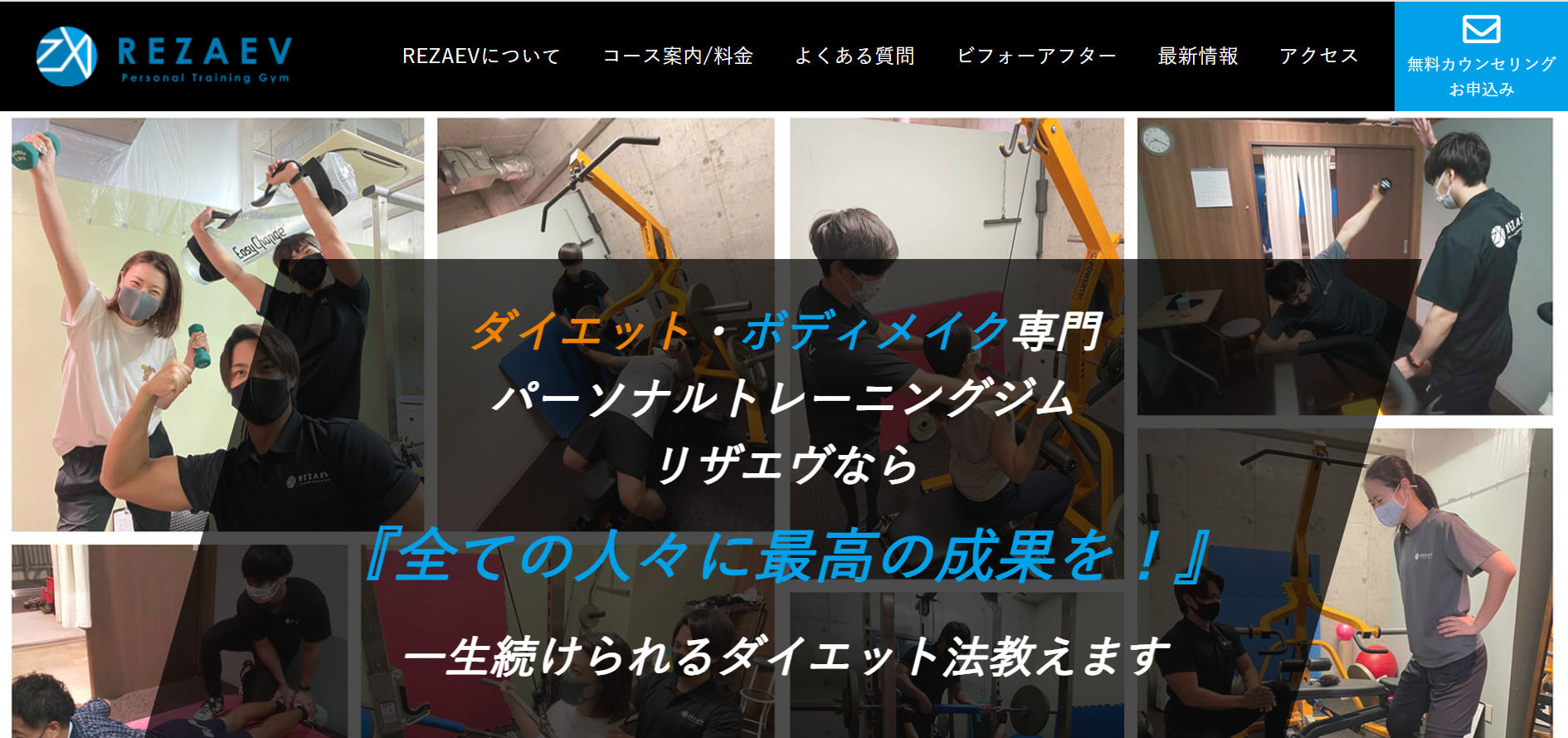 リザエヴなら、トレーニング初心者から上級者まで。ダイエットからボディメイクとあらゆるニーズにお応え出来る上質なトレーナーが揃っています。