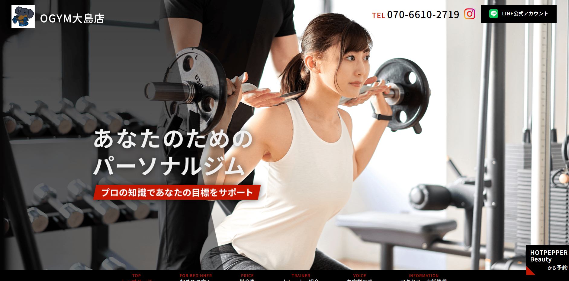 「OGYM大島店」は、30代以上で運動習慣を身につけたい方をターゲットにしたパーソナルジム。国家資格を持つトレーナーが、トレーニング・整体・栄養指導を組み合わせて一人ひとりの体をトータルサポートします。無理のない運動習慣づくりと通いやすい価格設定で、健康的な体を長く維持できる環境を整えています。