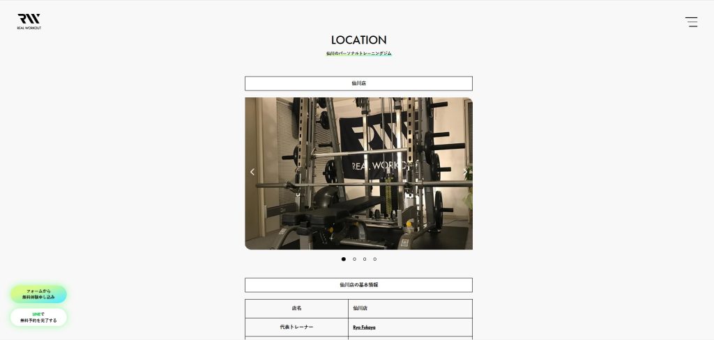 | 体験コースの料金 | 無料体験実施中 個人指導15分+マシン運動15分の30分 |