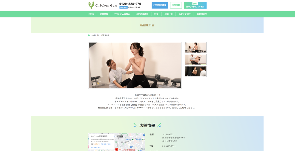 「Chicken Gym 新宿東口店」は、つらくないトレーニング、ストレッチ専門店に匹敵するストレッチ、無理のない食事アドバイスの3つのアプローチで理想のボディメイクを叶えるパーソナルジムです。