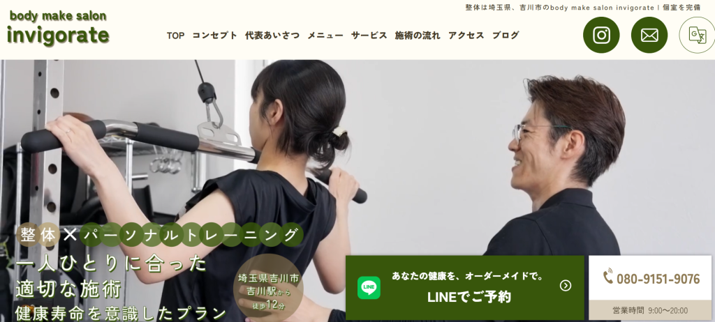 「body make salon invigorate」は、「根本改善×再発予防」をコンセプトに、整体とパーソナルトレーニングを融合したアプローチで、痛みや不調を根本からケアする完全予約制サロンです。国家資格保有者が姿勢や動作を徹底分析し、オーダーメイドの施術・運動指導を実施。個室空間で丁寧なサポートが受けられるため、慢性的な肩こり・腰痛・姿勢改善を目指す方にも最適です。