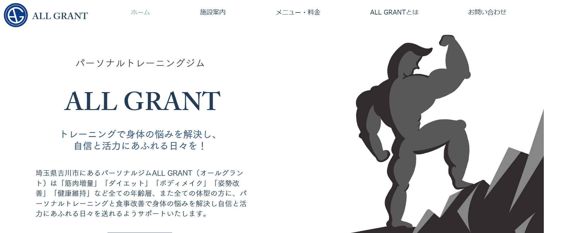 「ALL GRANT」は「筋肉増量」「ダイエット」「ボディメイク」「姿勢改善」「健康維持」など全ての年齢層、また全ての体型の方に、パーソナルトレーニングと食事改善で身体の悩みを解決し自信と活力にあふれる日々を送れるようサポートいたします